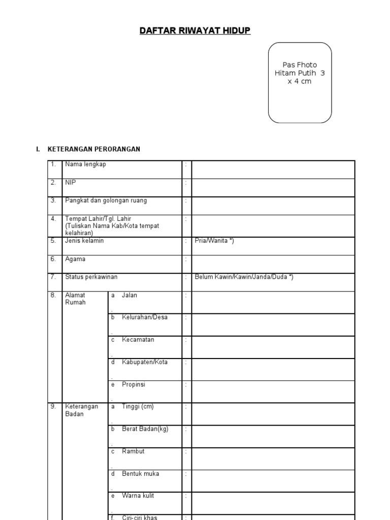 Daftar Riwayat Hidup Pns 2019 Halaman / Dokumen
